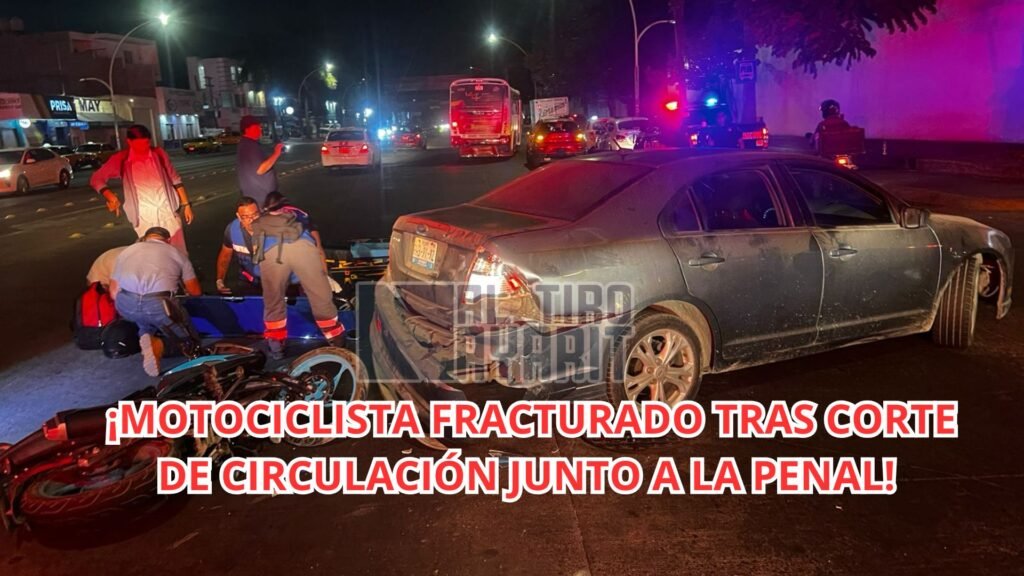 Maniobra imprudente en Bulevar Tepic-Xalisco deja a motociclista con fractura en la pierna